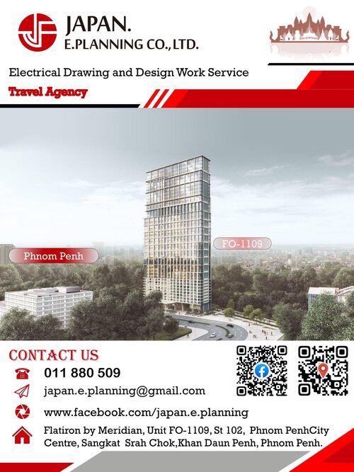 JAPAN.E.PLANNINGでは、カンボジアへの旅行プランの作成やホテル・航空チケットの手配などの旅行代理業務をはじめ日本の電気設備工事に関わる設備設計の委託業務を行っています。